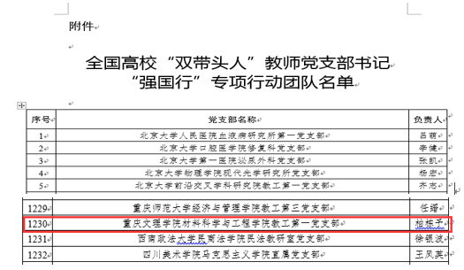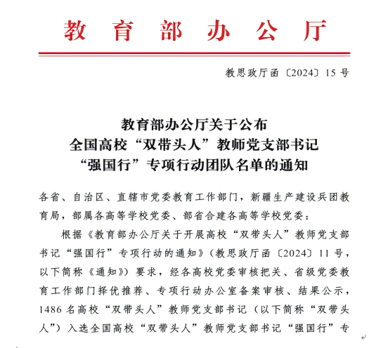 喜讯!学校OK138太阳集团 教工第一党支部入选全国首批高校 “双带头人”教师党支部书记“强国行” 专项行动团队