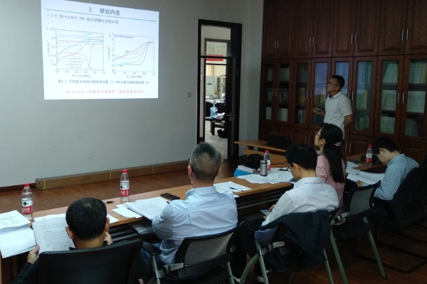 联合培养的2019届材料工程硕士研究生唐燕和黎燕荣分别就“基于金属纳米柔性复合电极的构筑及性能研究”和“燃料电池用非贵金属氧还原催化剂Fe(Co)-N/C的研究”,从研究背景、主要工作、结论与展望、攻读硕士学位期间取得的成果等方面依次向答辩委员会进行了汇报。答辩委员会专家一致认为,联合培养硕士研究生学位论文整体水平较高,选题具有较高的创新度,成果凸显应用价值,符合专业学位论文的要求。经答辩委员会决议,参加答辩研究生均全票通过答辩。