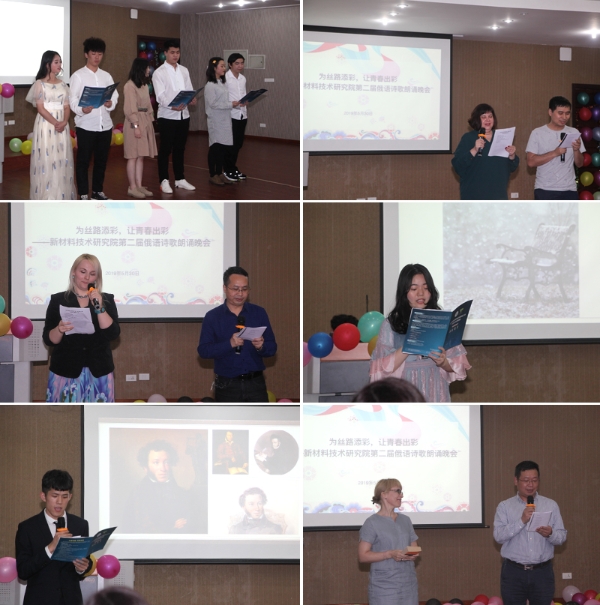 5月30日晚,“为丝路添彩,让青春出彩”——新材料技术研究院第二届俄语诗歌朗诵晚会在红河校区知津楼D506举行。学校校务部、教学部、新材料技术研究院相关负责人,教师代表,国际学院留学生、材料科学与工程专业国际班全体学生参加晚会。