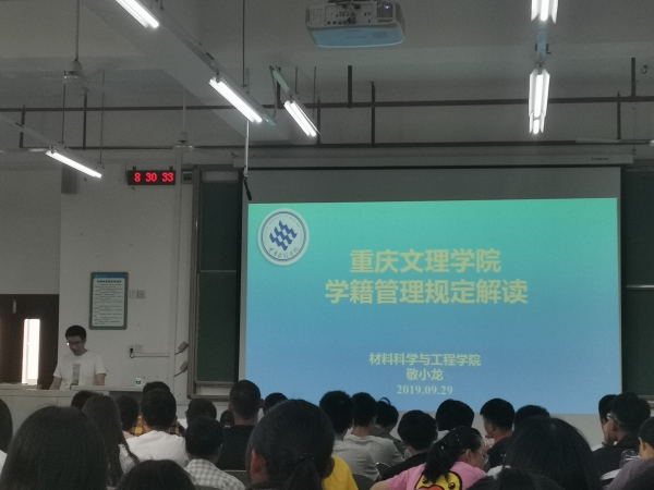 9月29日上午,我院新生学籍管理等文件专题解读报告会在知行楼B602进行。学院教学办公室敬小龙老师、李力老师为同学们进行专题讲授,全体2019级新生参加学习。