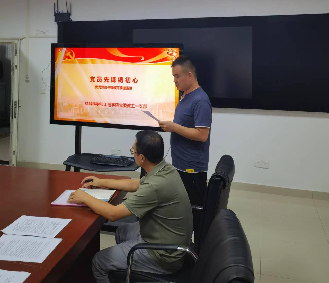 随后,开展了“经典解析颂初心”红色经典故事分享会,由党员代表姜中涛老师声情并茂地讲述了“长征精神”红色故事。通过故事的分享,不仅让在场的每一位党员重温了党的光辉历程,也进一步坚定了大家的理想信念。同时,程江老师以“党员先锋铸初心”为主题进行了优秀党员先锋模范事迹宣讲。分享了“光荣与力量”——孔海南同志坚韧不拔、求真务实的学习态度和严谨细致、踏实认真的科学精神,激励着着每一位党员以更加饱满的热情投身到工作中,为学院的发展贡献力量。
