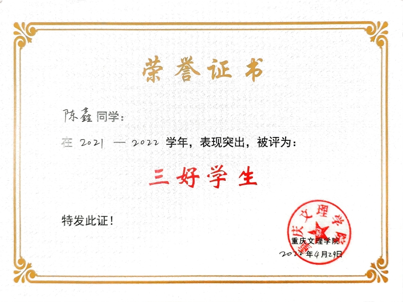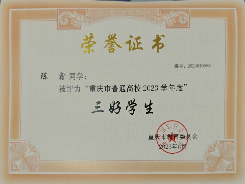 3.2023年,获评重庆市普通高校2023学年度三好学生;