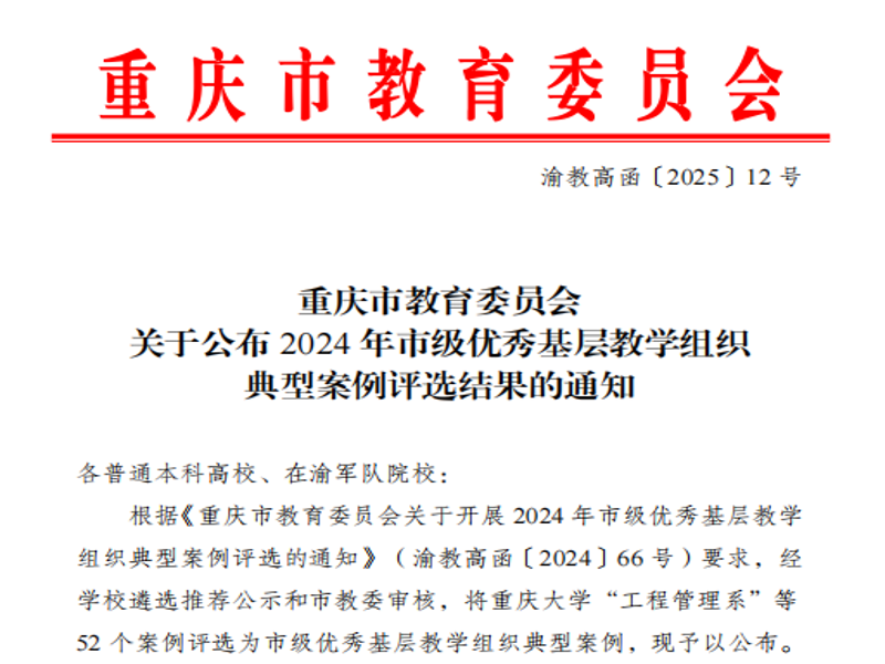 近日,重庆市教育委员会发布《关于公布2024年市级优秀基层教学组织典型案例评选结果的通知》,学院高分子材料系获批市级优秀基层教学组织典型案例。