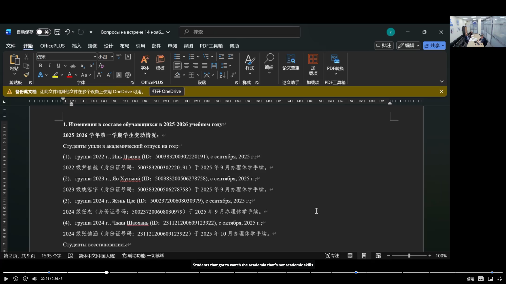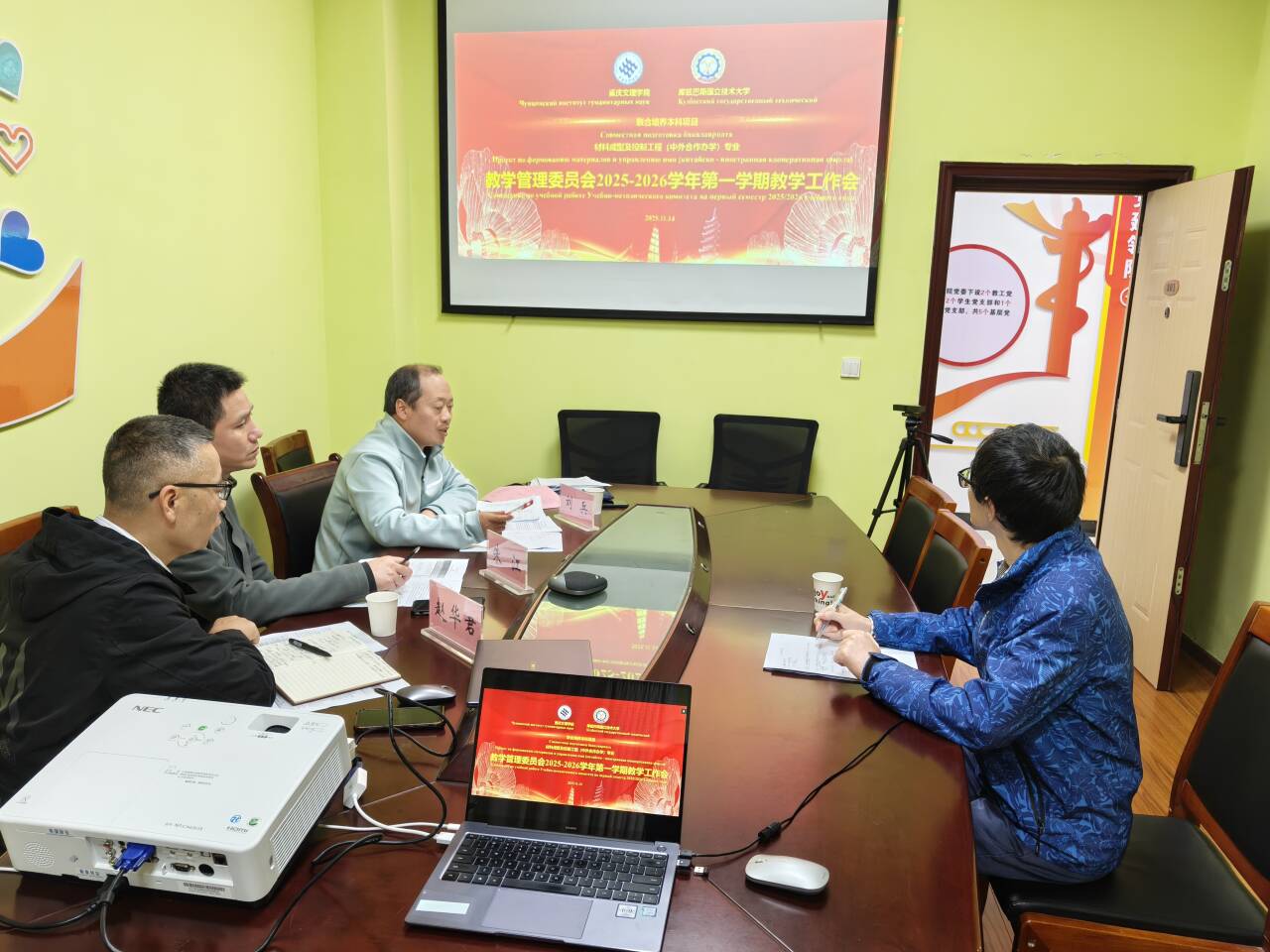 11月14日,学院材料成型及控制工程(中外合作办学)项目教学管理委员会2025-2026学年第一学期教学工作会在材料科技楼301室召开,我院院长、教学管理委员会主任朱江,副院长赵华君及项目管理办公室人员参会,库兹巴斯国立技术大学信息技术、机械制造与汽车运输学院院长、教学管理委员会副主任杜宾金D.M.,副院长日丹诺夫V.L.,国际处副处长伊万杰琳·殷娜,项目协调员沙季科D.B.通过视频方式参会。